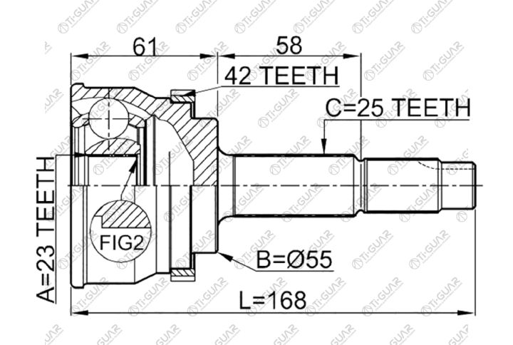 ШРУС наружный /TI-GUAR для Nissan Sunny Sentra FB15 1998- WINGROAD WHY11 VHNY11 WHNY11 4WD /ABS /23*55*25; TG-7461Z42; (NI-E061A NI-061A42 CO5725A) 391014M570 NI61A42